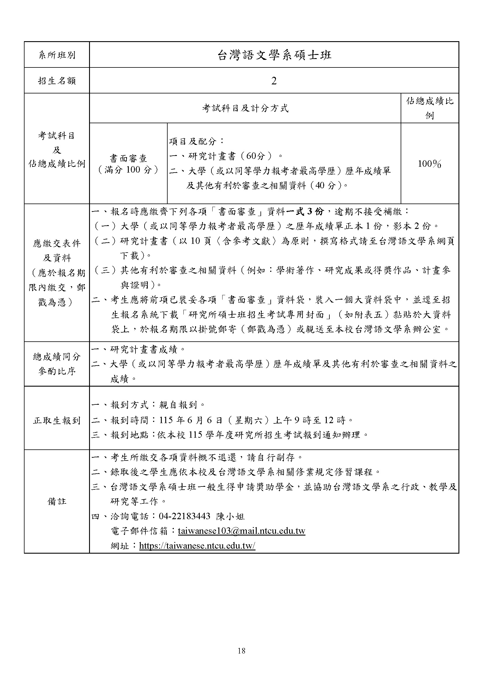 6. 聯絡信箱:adm@mail.ntcu.edu.tw (教務處);taiwanese103@mail.ntcu.edu.tw (台語系陳小姐)
