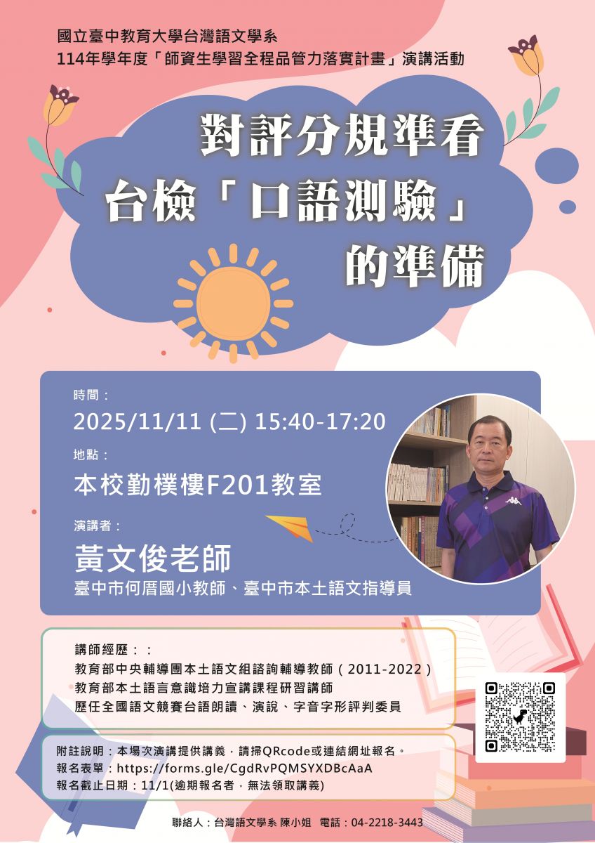 聯絡人:台灣語文學系 梁老師 04-2218-3919