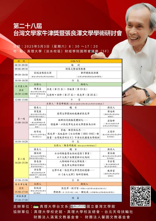 「台灣文學家牛津獎」之頒發,在國內已有「台灣諾貝爾文學奬」之美譽,歷來備受關注。台文系訂於2025年5月3日(六)舉辦第28屆台灣文學家牛津獎,同時舉辦研討會。