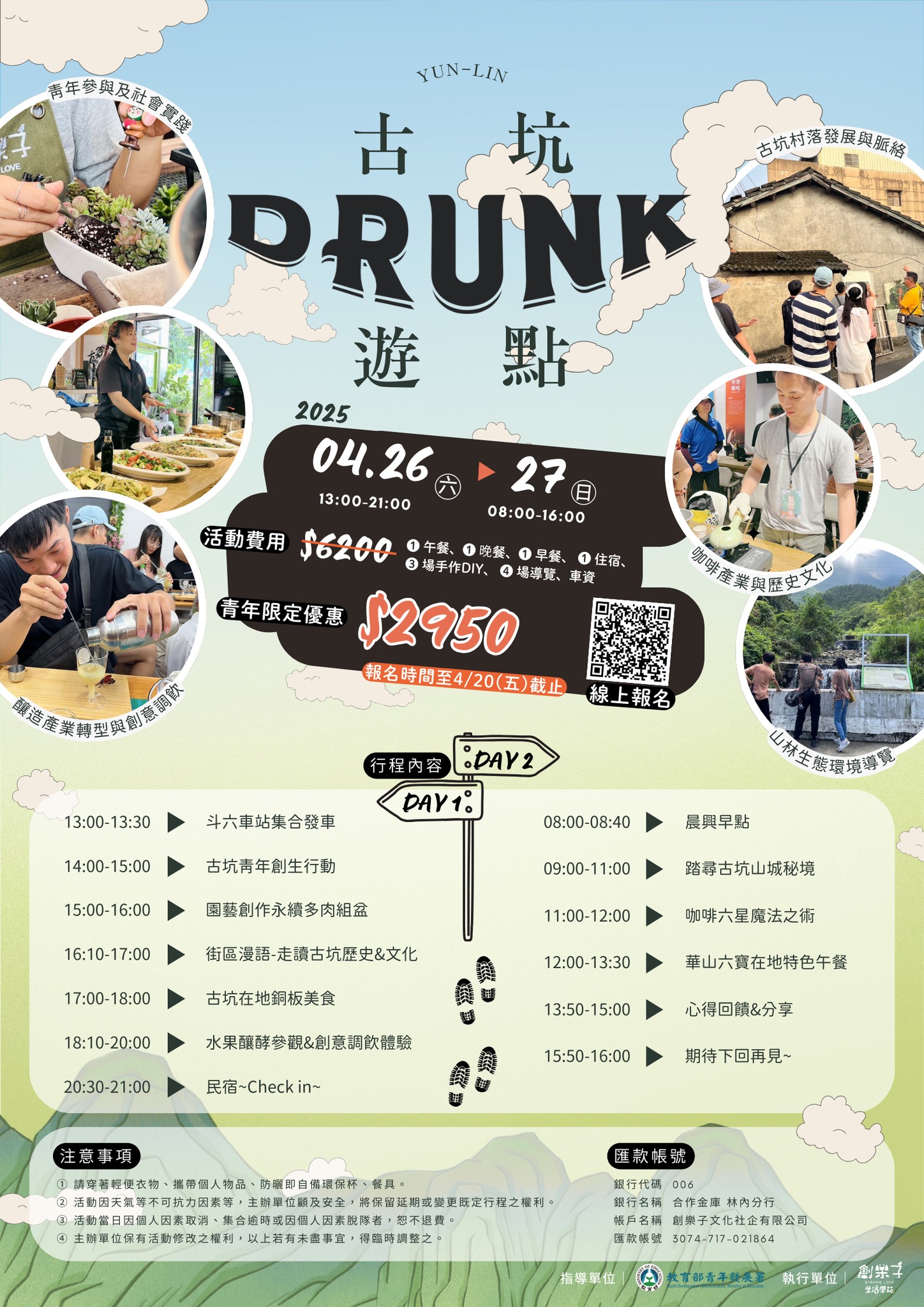 集合地點:斗六火車站後站、創樂子、雲科大南側門(三擇一)