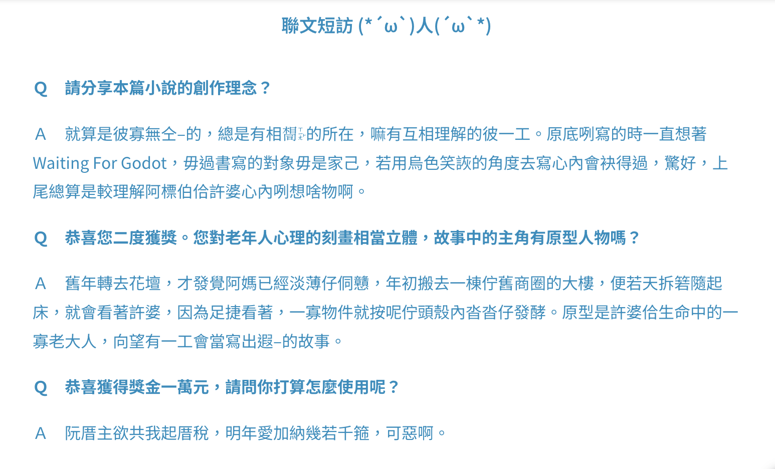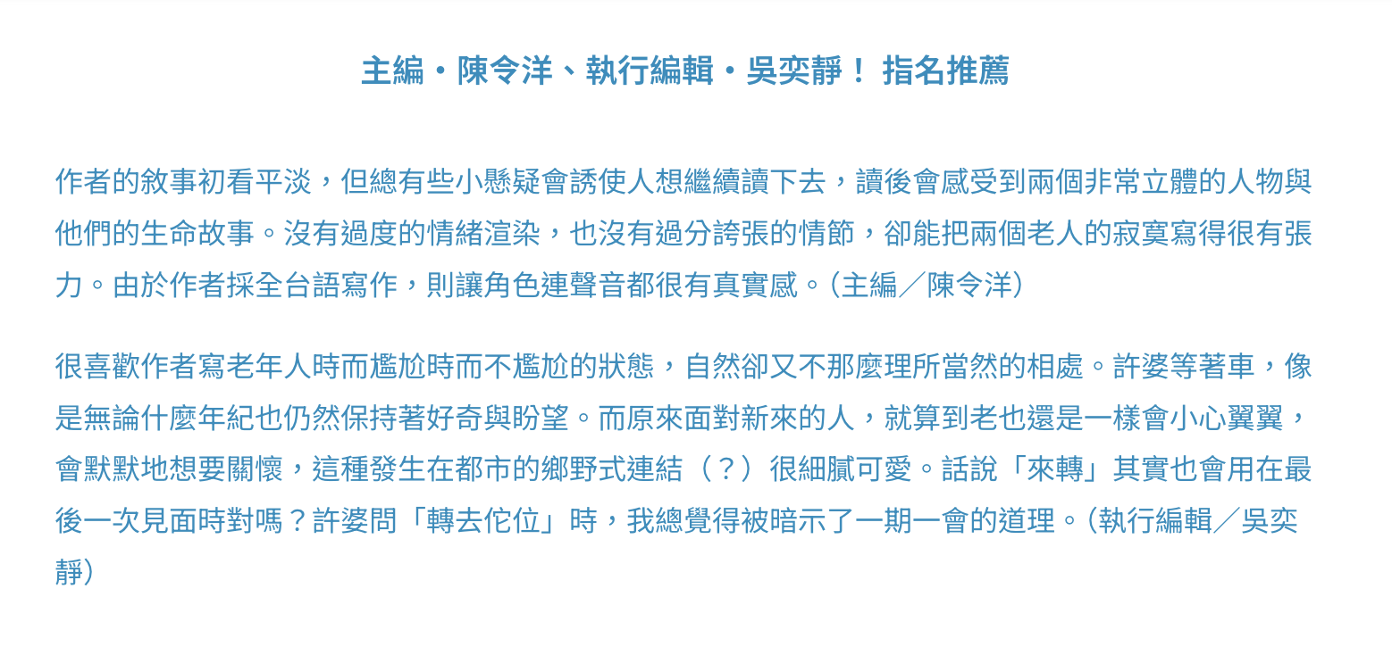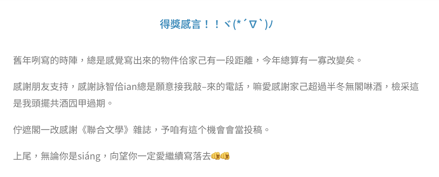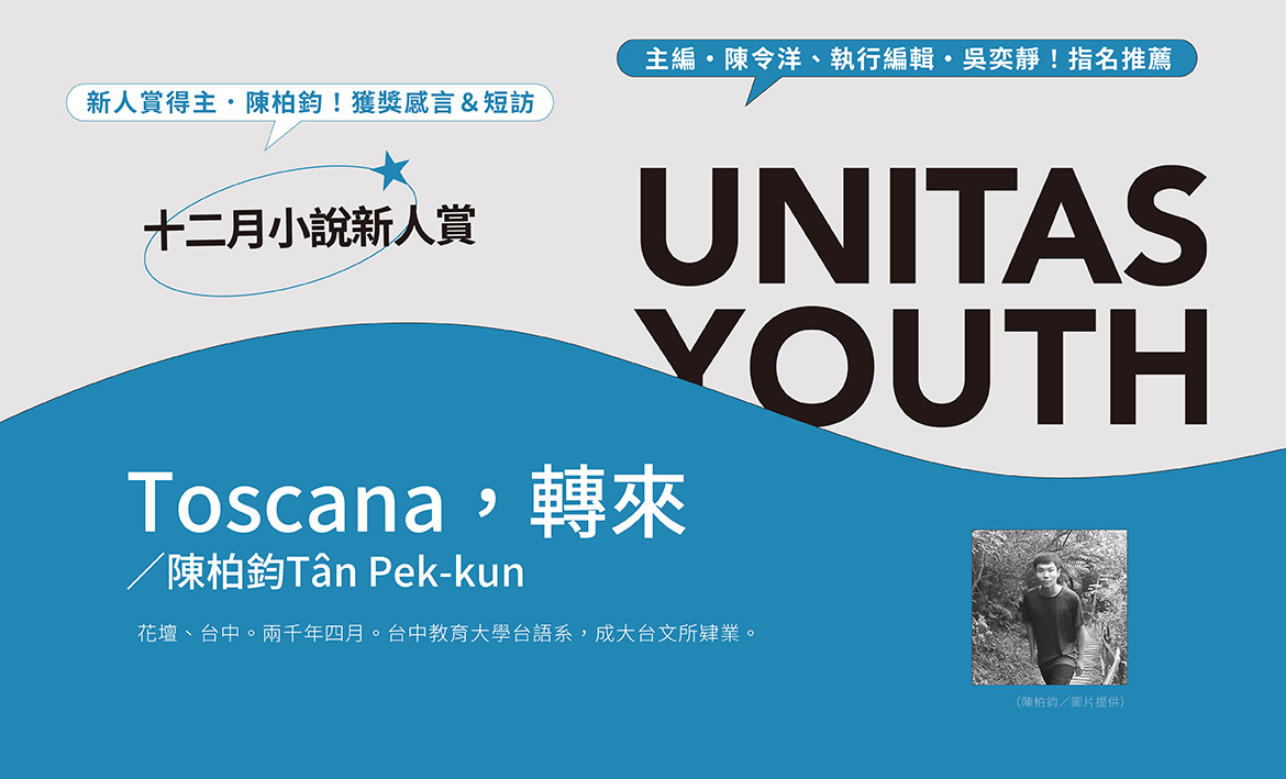 【賀】本系110級系友陳柏鈞Tân Pek-kun獲獎UNITAS YOUTH十二月小說新人賞〈Toscana,轉來〉